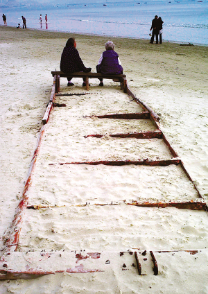 夕阳西下,跳舞的、唱歌的、饭后百步走的、甚至是来广场看电视的老人又给海滩带来了一份大戏尾声前的热闹。