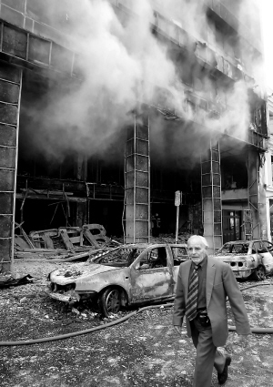 12月7日,在希腊首都雅典,一名男子从一家在骚乱中被完全毁坏的商店前走过。 希腊首都雅典市中心和北部城市萨洛尼卡等地6日晚至7日凌晨发生骚乱。原本因抗议警察打死一名少年举行示威的青年与警察发生暴力冲突,雅典市中心繁华地带一些商店受损。新华社/法新
