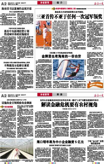 海南日报 本省新闻 002 2008-12-081 2008年12月08日 星期一