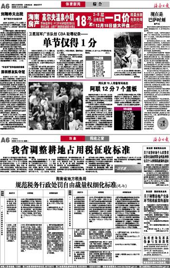 海南日报 体育新闻 006 2008-12-081 2008年12月08日 星期一