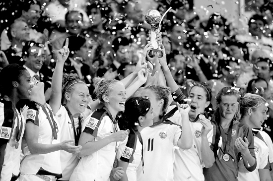 12月8日,美国队夺得20岁以下女足世青赛冠军。图为美国队捧杯庆祝。 新华社发