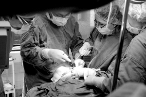 | ↑同乡会义诊团的医务人员在文昌市人民医院里为患者做整形手术。 |