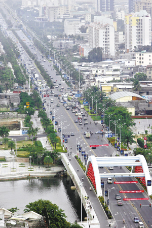 | 三亚迎宾大道在“城市扩张”中将扮演重要角色。 本报记者 程范淦 摄 |