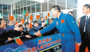 神七航天 飞行代表团抵澳门 12月8日,神舟七号载人航天飞行代表团乘船从香港抵达澳门,开始对澳门特别行政区进行为期3天的访问。这是航天员翟志刚同澳门小学生握手。 新华社记者 刘卫国 摄