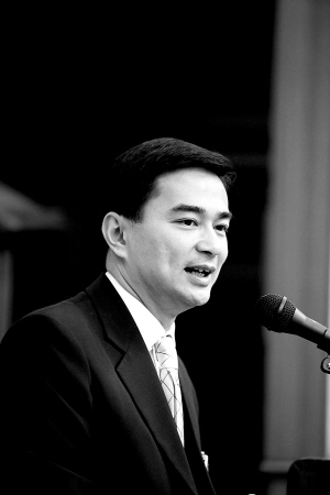 据新华社曼谷12月9日电 泰国原泰国党、原中庸民主党、为国党和泰人同心国家发展党的代表9日下午在曼谷举行记者招待会,明确表示支持以民主党为主导组建新政府。 原泰国党首席顾问、看守政府副总理沙南在记者招待会上说,他们支持民主党主席阿披实(见上图)出任新总理。沙南表示,相信阿披实将得到240多名国会下议院议员的支持。