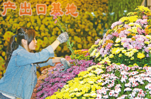| 东方市展馆全部用鲜菊花布置,突出全国最大菊花生产出口基地主题。
