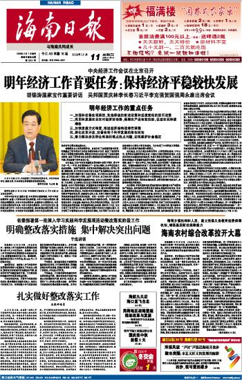 海南日报 头版 001 2008-12-111 2008年12月11日 星期四