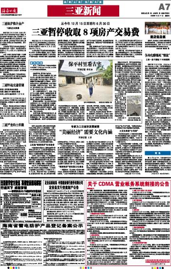 海南日报 三亚新闻 007 2008-12-111 2008年12月11日 星期四
