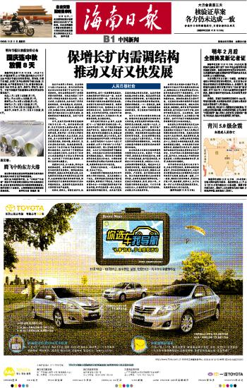 海南日报 中国新闻 009 2008-12-111 2008年12月11日 星期四