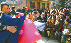 12月11日,陕西省西安市民政局和市福彩中心开展“福彩送暖到深山”活动,将2000套(床)崭新的棉衣被送往蓝田县葛牌镇岱家河村、周至县楼观镇马岔村等地,为当地特困群众送温暖。 新华社发