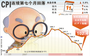 据新华社北京12月11日电 (记者刘铮、周英峰)国家统计局11日发布的数据显示,11月我国居民消费价格总水平(CPI)同比上涨2.4%,涨幅比上月回落1.6个百分点。 这是今年以来我国CPI同比涨幅连续第七个月回落。至此,CPI从同比上涨8.7%的峰值回落到2.4%,稳定物价收到明显成效。 如何看待物价涨幅大幅回落 (B4版)