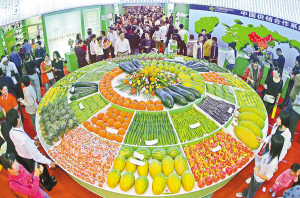 | 12月12日,海交会展馆内花果飘香,参观的群众络绎不绝。 本报记者 李英挺 摄 |