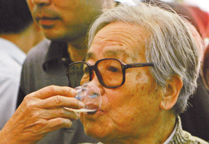 ↑一位来自内地的老奶奶慢慢品尝椰汁。 本栏照片均由本报记者 李英挺 摄