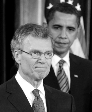 奥巴马提名 汤姆·达施勒任卫生部长 12月11日,美国当选总统奥巴马(后)和前南达科他州联邦参议员汤姆·达施勒(前)在美国芝加哥出席新闻发布会。奥巴马在新闻发布会上宣布,他提名达施勒担任下届卫生与公众服务部部长兼白宫卫生政策办公室主任。 新华社/法新