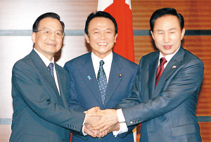 三国领导人共同签署了《三国伙伴关系联合声明》,并发表了《国际金融和经济问题的联合声明》、《三国灾害管理联合声明》和《中日韩合作行动计划》 (A4版)