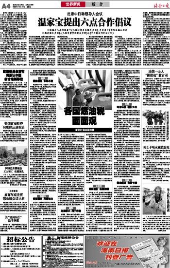 海南日报 世界新闻 004 2008-12-141 2008年12月14日 星期日
