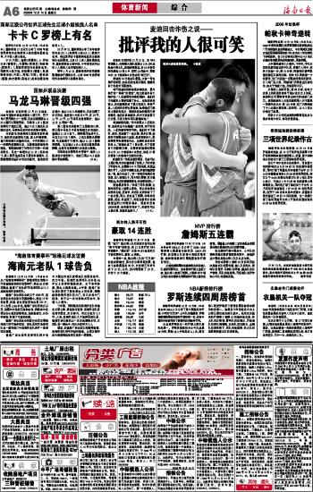 海南日报 体育新闻 006 2008-12-141 2008年12月14日 星期日