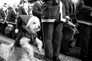 →12月14日,一只宠物狗被打扮成圣诞老人的模样与主人一起参加在葡萄牙城市波尔图举行的一年一度的圣诞老人巡游。参加今年波尔图圣诞老人巡游的人数达14000多,参加者意欲创造新的吉尼斯世界纪录。 新华社/路透