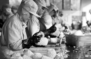 12月11日,定安县海南绿沁园实业有限公司,工人们正在加工菠萝罐头。作为一家90%产品出口欧美的食品加工企业,该公司积极应对“金融危机”,通过加强管理,控制成本,开辟、拓宽国内外新市场的方式,谋求企业发展。目前,该企业的380多位员工没有一人被裁员或减薪。 本报记者 王凯 特约记者 傅林 摄
