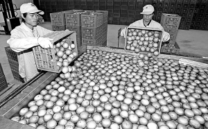 日前,在琼中黎族苗族自治县湾岭镇的绿橙果业公司,工人将绿橙清洗后进行分拣包装。 该公司投资1500多万元,引进国外先进的水果光电分拣保鲜设备,可以对绿橙、芒果、木瓜等水果进行分拣分选处理,并建有国内先进的组装式冷库,为果农果商提供包装贮运。为了提高生产效率,公司派员工去海外参加培训,提高加工工艺水平,提升绿橙的品质,为绿橙进入高档水果市场奠定基础。 本报记者 李英挺 特约记者 黎大辉 摄影报道