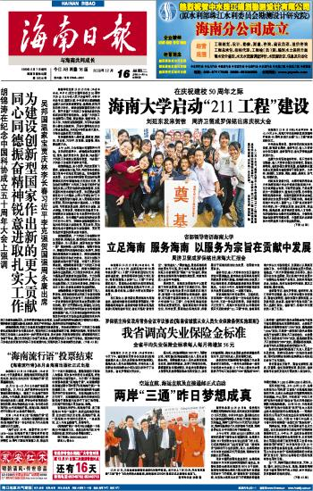 海南日报 头版 001 2008-12-161 2008年12月16日 星期二