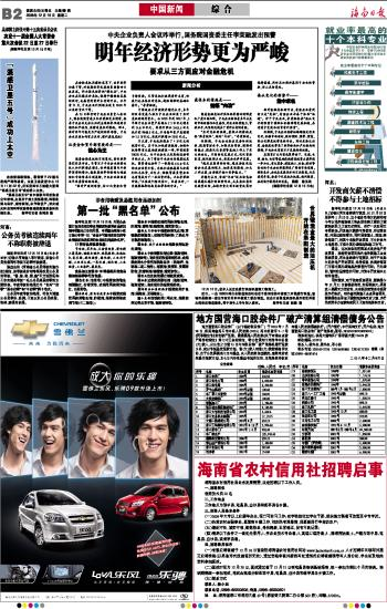 海南日报 中国新闻 010 2008-12-161 2008年12月16日 星期二