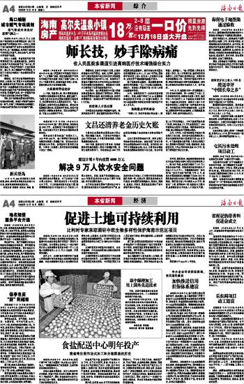 海南日报 本省新闻 004 2008-12-161 2008年12月16日 星期二