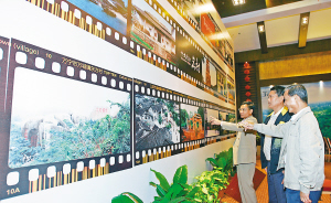 | 入选的名镇(村)代表在颁奖典礼举行之际观看相关入选名镇(村)的精彩图片。