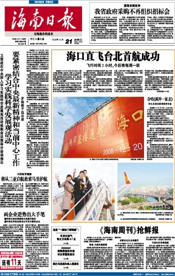 海南日报 头版 001 2008-12-211 2008年12月21日 星期日