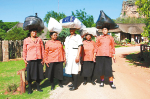 | 恩塔贝尼野生动物保护区,头顶物品出行的服务员。 |