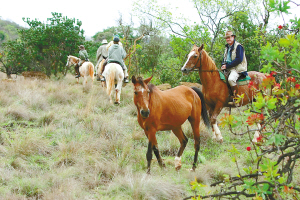 | 恩塔贝尼野生动物保护区里骑马的游客。 |