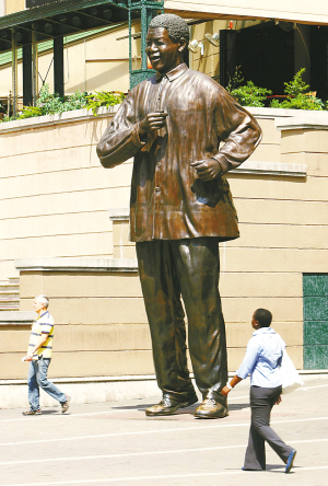 经约堡往南约1小时车程,经过两座正在修建的2010年世界杯比赛场馆,我们来到索维托———这个在“种族隔离”时代被设为黑人居住区的南非最大“城镇”。这里看不到任何高层建筑,也少见大树绿荫,褐红色的低矮民居成片而建,在巴士上就可以一览无遗。纵横交错的小路,连接着一个个生活区,黑人孩子在烈日里奔跑欢笑。在这里,有200万黑人居民日起夜居,同时也记载着黑人的战争史,两位诺贝尔和平奖得主———南非前总统曼德拉和图图大主教就曾在此生活过。尽管生活并不富裕,但这里的人对外来不同肤色的游客,除了热情兜售纪念品,也会敲响非洲腰鼓,伴着节奏翩翩起舞,爽朗开怀。在这里,无论贫富贵贱,无论高矮胖瘦,男女老幼,都天生拥有超强的音乐细胞和舞蹈才能,他们用发自内心的快乐,与来客欢歌热舞,热情四射。