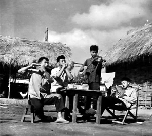 | 知青们在劳动之余自娱自乐。(资料图片) |