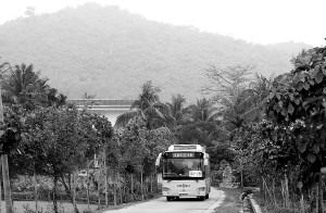 | 直通三亚市区的9路公交大巴从上廖村口开出。 本报记者 李英挺 摄 |