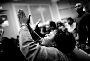 | ↑日前,在美国汽车城底特律进行的一场题为“混合动力的希望”的推介活动上,一名妇女为美国汽车制造业的未来祈祷。 新华社/路透 |