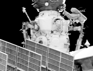 国际空间站宇航员太空行走 这张美国宇航局12月22日提供的电视截图显示,宇航员迈克·芬克(右上)在国际空间站外作业。国际空间站两名宇航员将在6个多小时的太空作业中完成货运飞船维护等多项任务。 新华社/路透