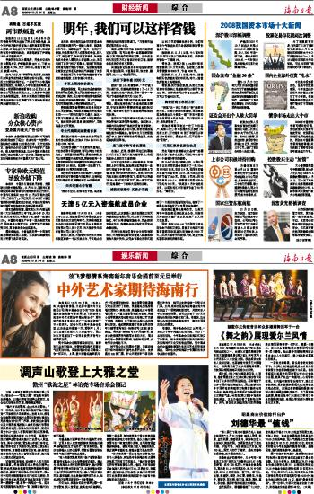 海南日报 综 合 008 2008-12-241 2008年12月24日 星期三
