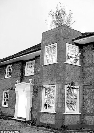英国设计师造10米高圣诞树,伸出3层楼屋顶。 新华发