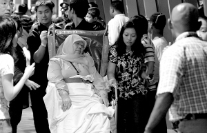 | →一名被救出的妇女接受治疗。 新华社/路透 |