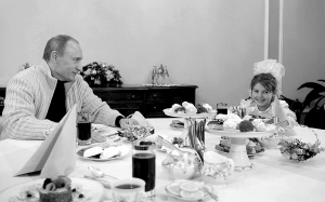 12月23日,俄罗斯总理普京在首都莫斯科郊外自己的住所招待来自布里亚特共和国一个边远小村庄的9岁女孩达莎·瓦尔福洛梅耶娃。达莎在12月3日一个名为“与普京对话”的视频连线节目中向普京说出了自己的愿望———能够与妹妹在新年得到“灰姑娘”那样的连衣裙。普京不仅当场答应扮成魔法师送出连衣裙,而且还邀请她和妹妹以及年迈的奶奶来莫斯科共度新年。新华社/路透