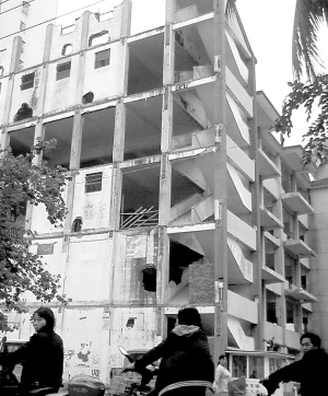 本报海口12月24日讯 (记者古月) “我每天都提心吊胆地在这座拆了一半的大楼下通行,不知道哪天会被倒下来的楼板砸到。”王阿婆对记者说。