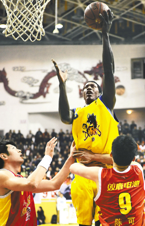 | 12月24日,江苏队员哈维(上)在与八一队的比赛中上篮。 新华社发 |
