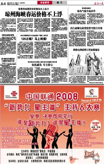 海南日报 综 合 004 2008-12-251 2008年12月25日 星期四