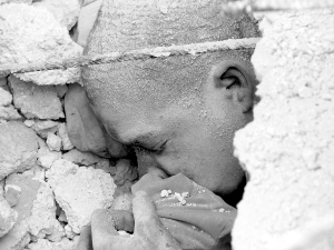 | 11月7日,在海地首都太子港,一名奄奄一息的学生被掩埋在废墟中。11月7日,太子港郊外一所名为“诺言”的教会学校的教学楼突然坍塌,造成至少92人死亡,另有超过150人受伤。 新华社发 |