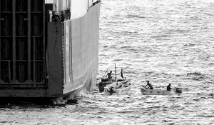 | 这张美国海军发布的照片显示的是,9月25日,索马里海盗抢劫一艘货轮。索马里国内局势动荡。在战乱和饥荒的影响下,索马里海盗活动越来越猖狂。据统计,索马里海盗2008年已对90余艘船只发动袭击。