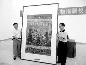 | 蔡於良向省博物馆捐赠龙被。资料照片 |