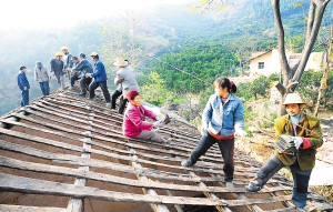 12月25日,村民帮助受灾户拆房,以减少损失。 近日,湖北省秭归县归州镇向家坝滑坡体变形加剧,当地政府紧急将30多户受灾村民转移到安全地带,并组织专人对滑坡体实行严密监测。 新华社发