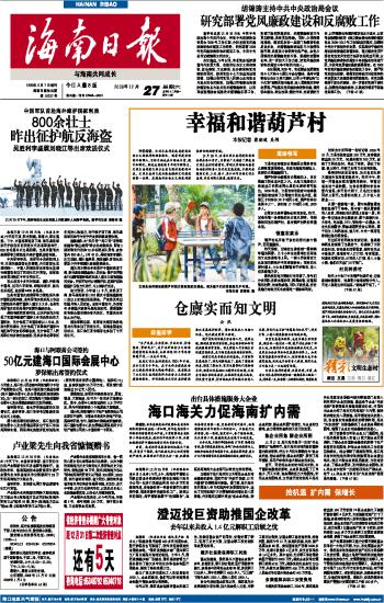 海南日报 头版 001 2008-12-271 2008年12月27日 星期六