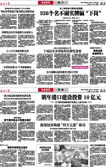 海南日报 本省新闻 003 2008-12-271 2008年12月27日 星期六