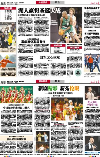 海南日报 体育新闻 008 2008-12-271 2008年12月27日 星期六
